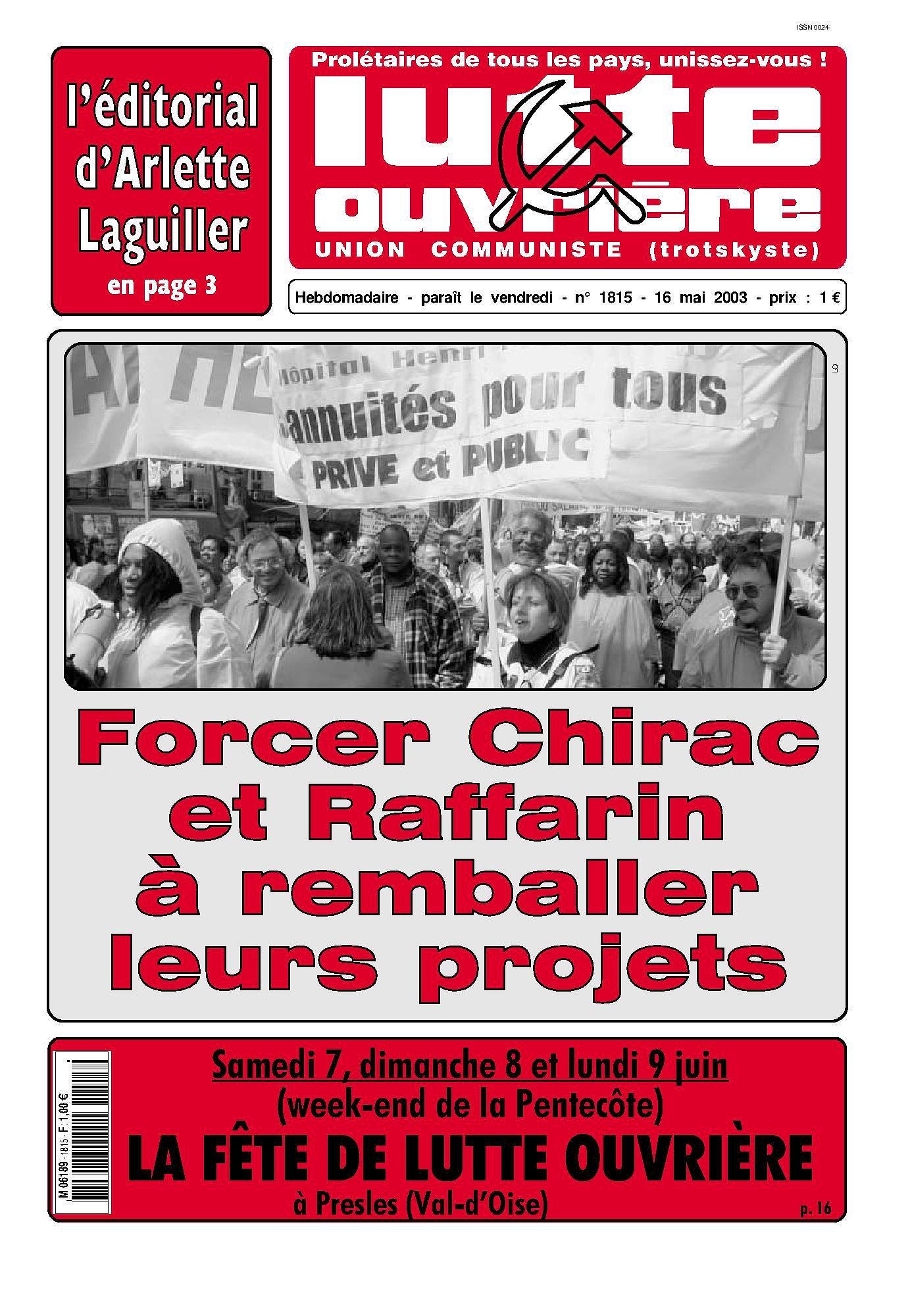 Lutte de classe 73 (mai-juin 2003) est parue
