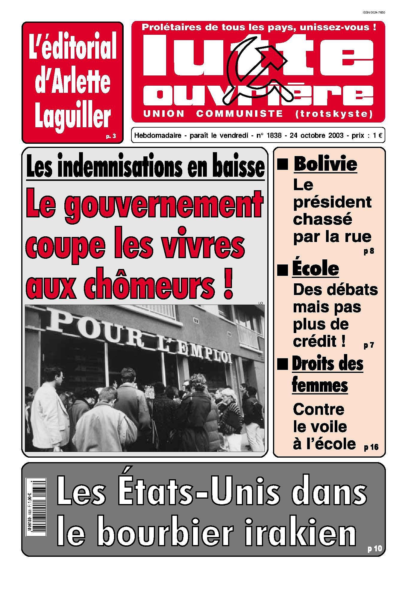 Au sommaire de LUTTE DE CLASSE N° 75 (Octobre 2003)