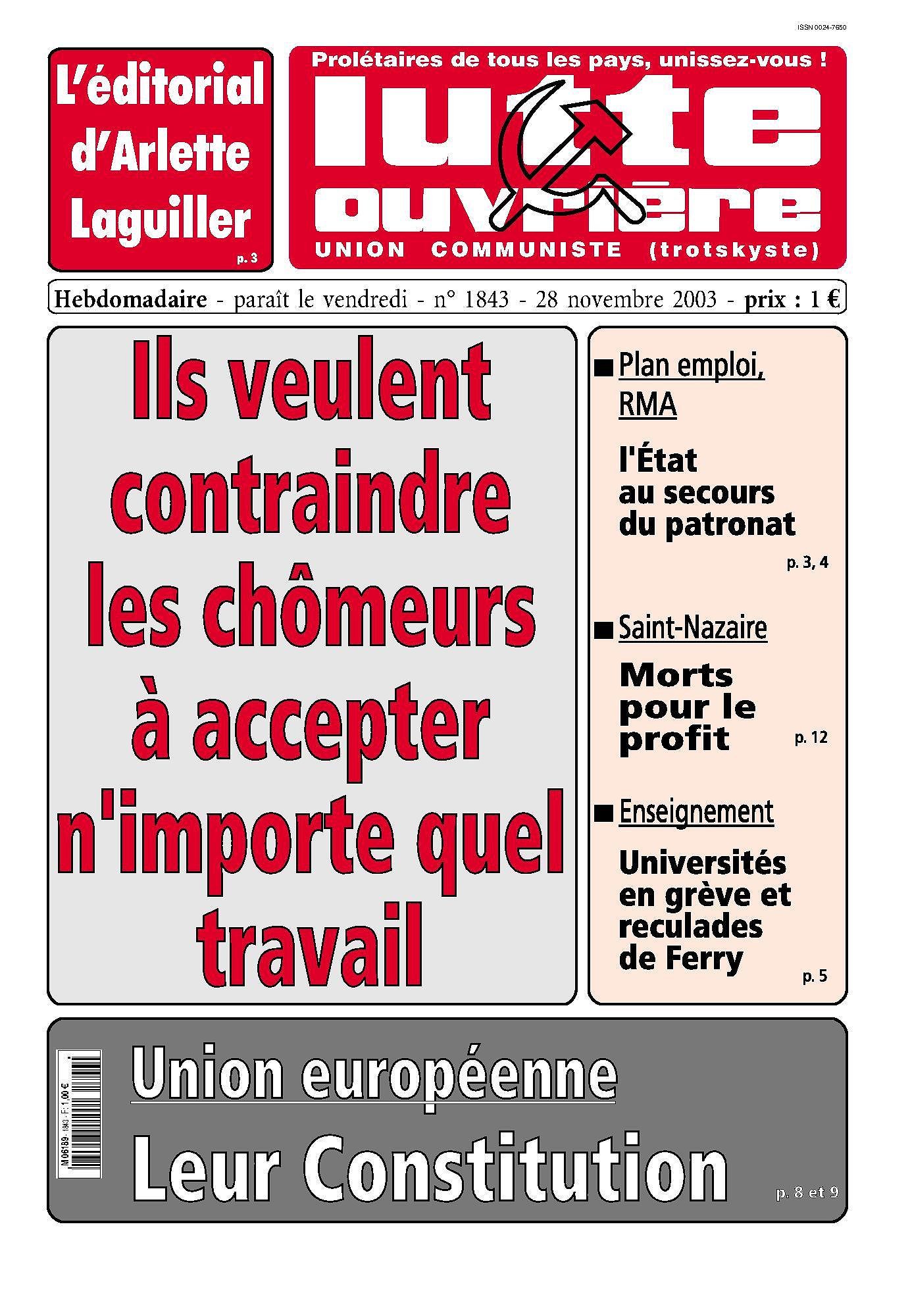 Au sommaire de Lutte de classe n° 76 (novembre 2003)