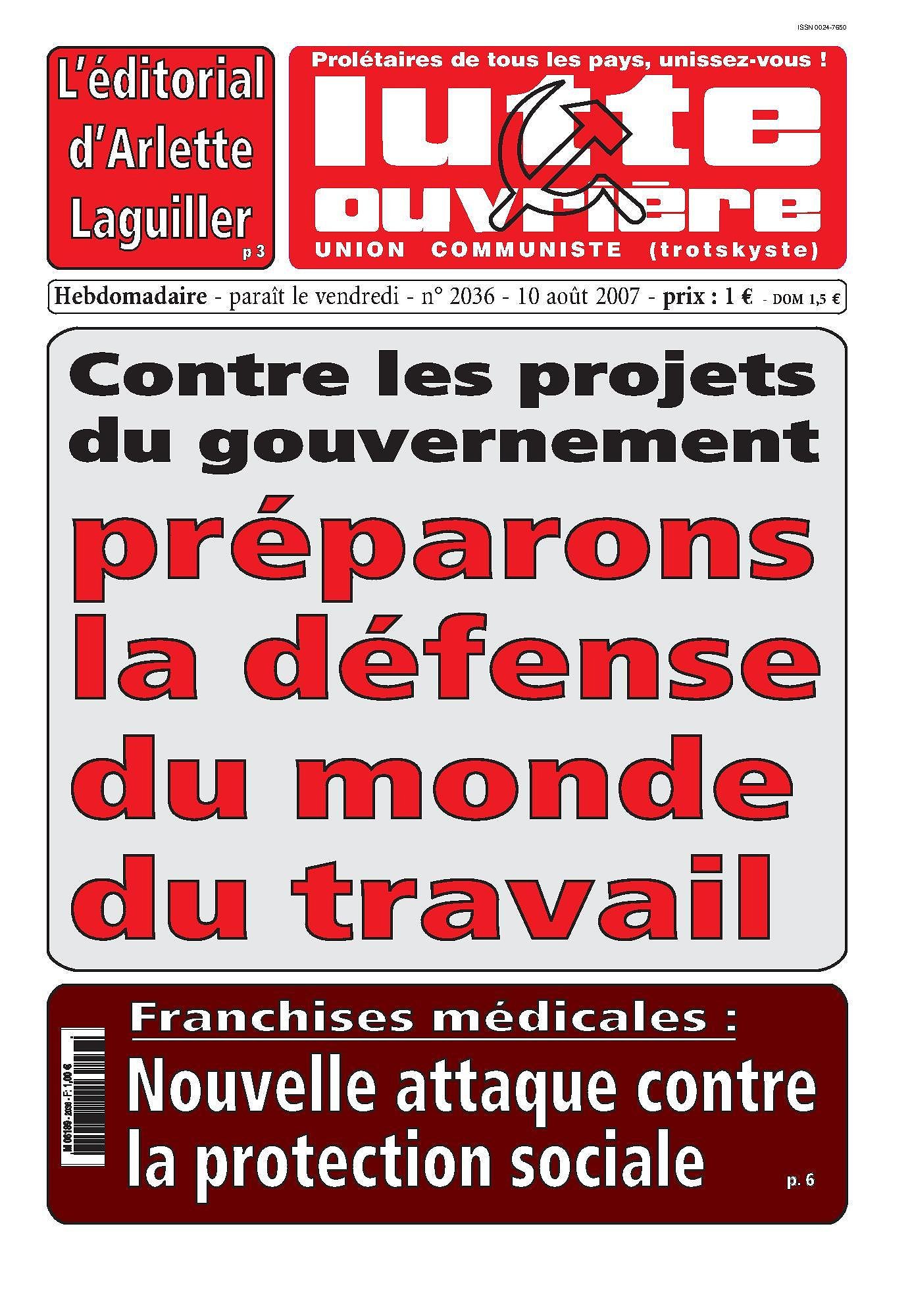 Au sommaire de LUTTE DE CLASSE No 106 (été 2007)