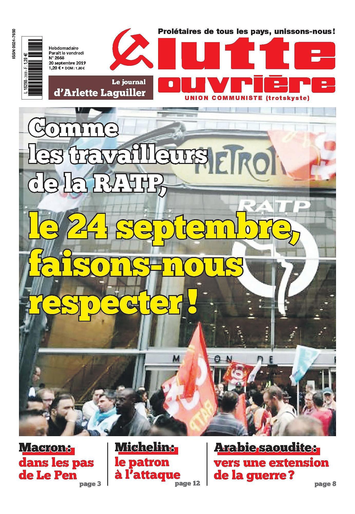 Comme les travailleurs de la RATP, le 24 septembre, faisons-nous respecter