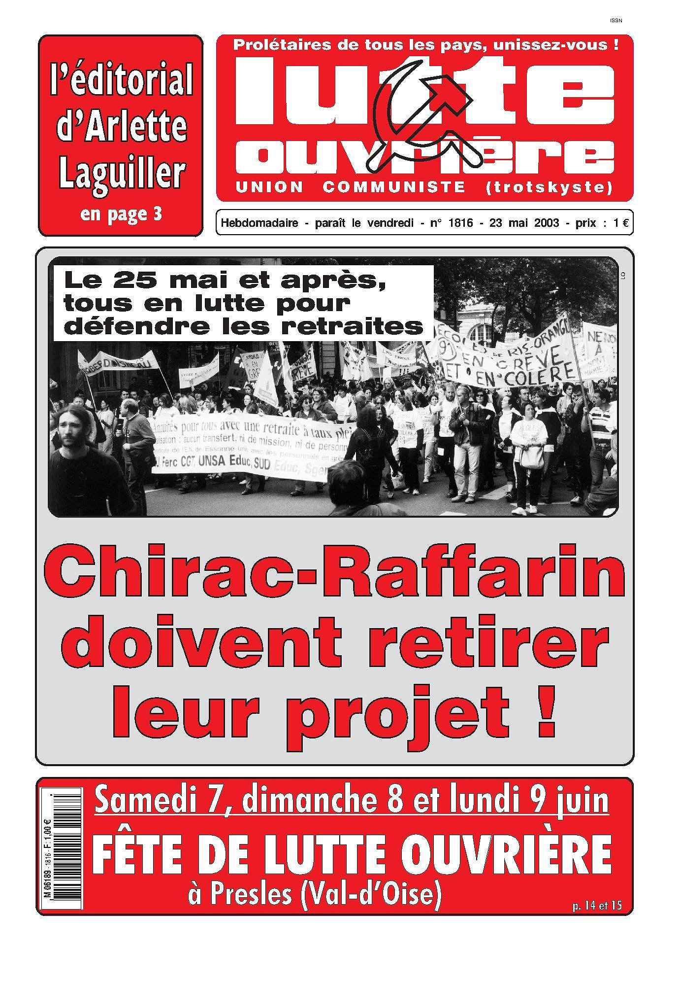 Défendre nos retraites, obliger le gouvernement Chirac-Raffarin à retirer son projet !