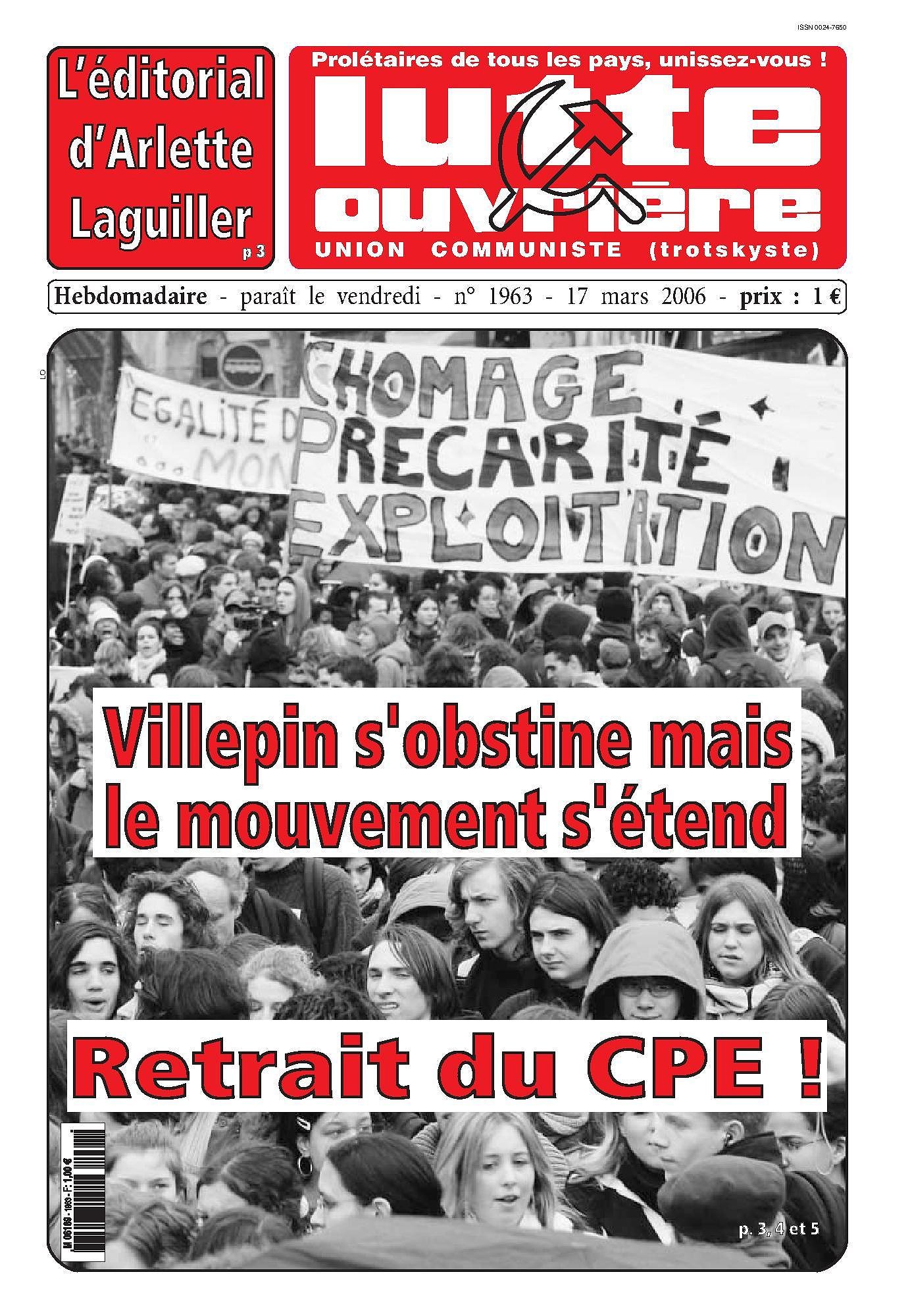 Villepin refuse de reculer sur le CPE : Il faut que la pression de la rue l'oblige à retirer le CPE et le CNE!