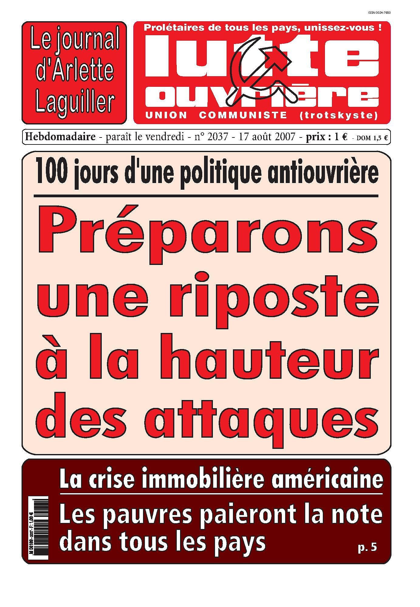 Au sommaire de LUTTE DE CLASSE No 106 (été 2007)