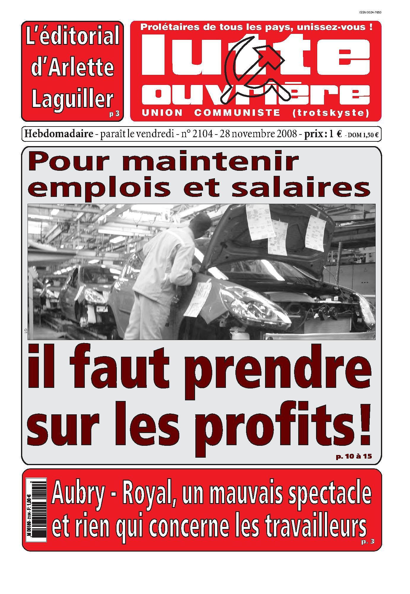 Au sommaire de LUTTE DE CLASSE N° 116 (novembre 2008)
