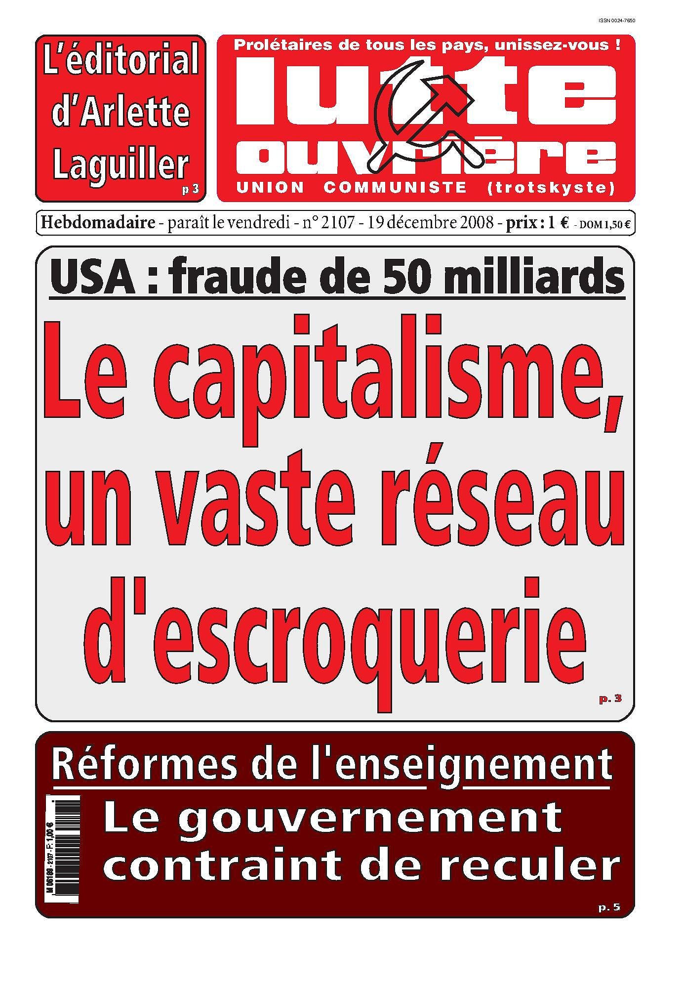 Au sommaire de Lutte de classe numéro 117 (décembre 2008)