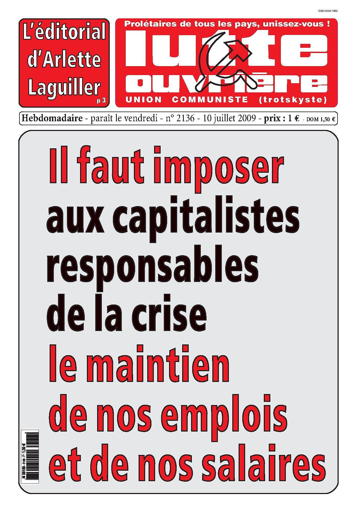 Au sommaire de Lutte de Classe n° 121 (juillet 2009)