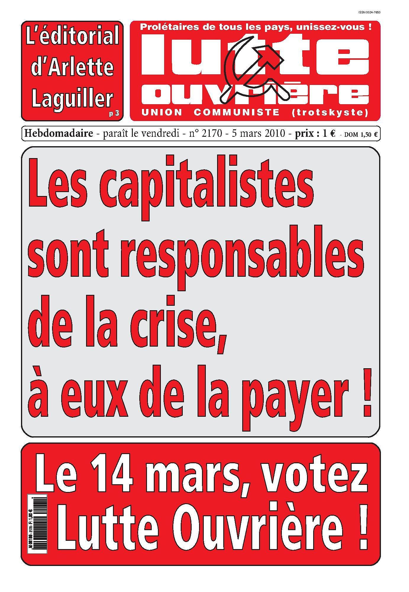 Votez Lutte Ouvrière ! Les capitalistes et les banquiers sont les seuls responsables de la crise. À eux de la payer, pas aux travailleurs !