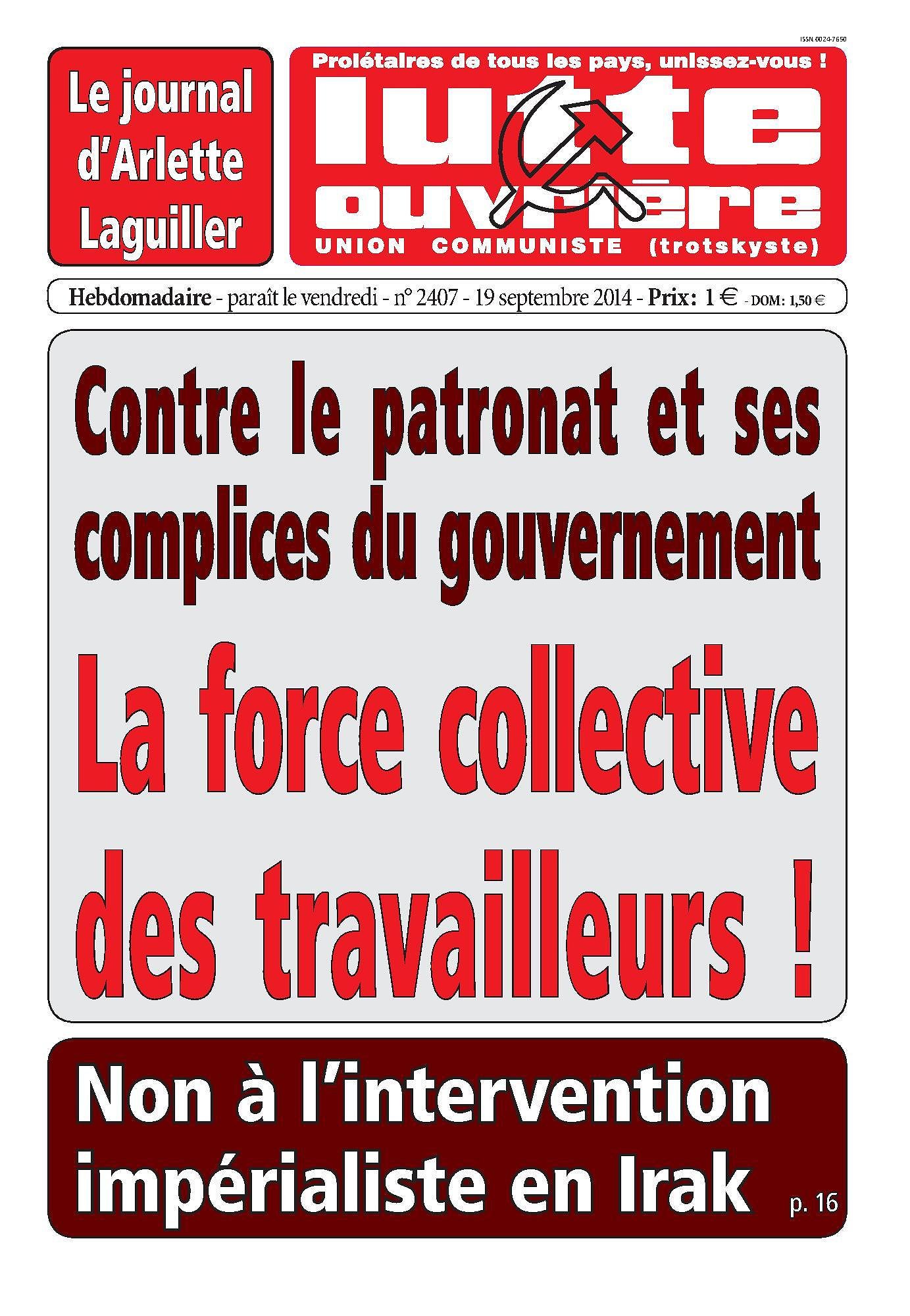 Communiqué de Nathalie Arthaud du 16 septembre 2014 :